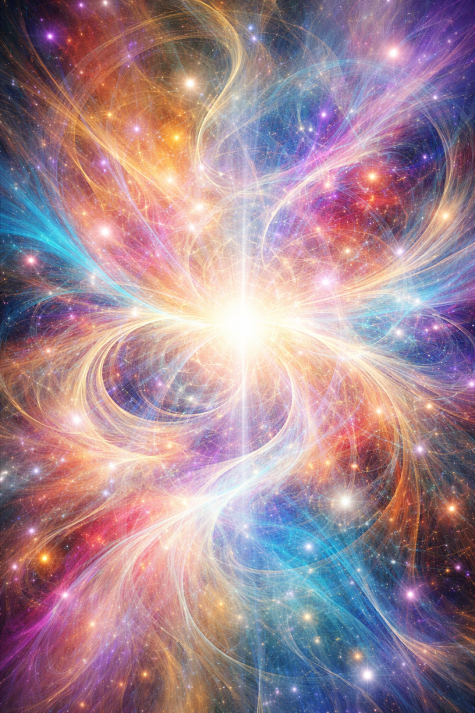 The universe doesn’t hide God; it is God hiding as the universe. Every atom, every dimension, every flicker of awareness is the divine expressing itself through the language of matter. The cosmic dance unfolds not as a performance for an audience, but as an intimate act of self-revelation. The observer is part of the choreography, never outside of it. What we call “physical” is simply the slowed vibration of the infinite, shaped by the senses into something tangible enough to touch.